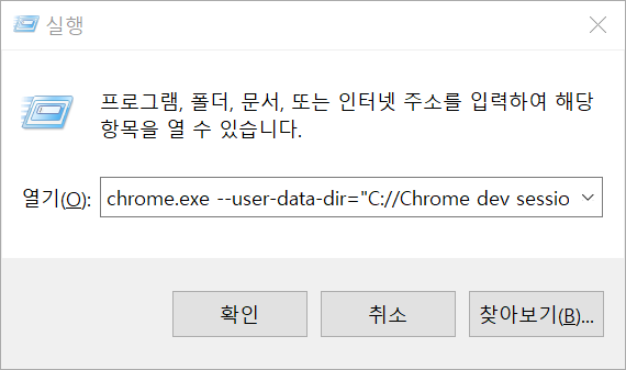 윈도우에서 실행창 (윈도우키 + R)을 띄워 아래의 명령어를 입력한다.